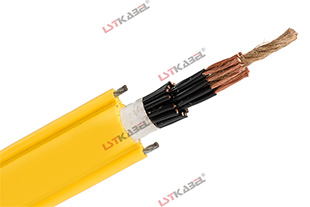 特殊性能:絕緣和護套等用扁電纜專用丁腈復合料;提高電纜柔軟特性以及防腐耐寒等性能;可按客戶使用要求,在線芯兩側增加鋼絲繩用來加強電纜的抗漲強度。